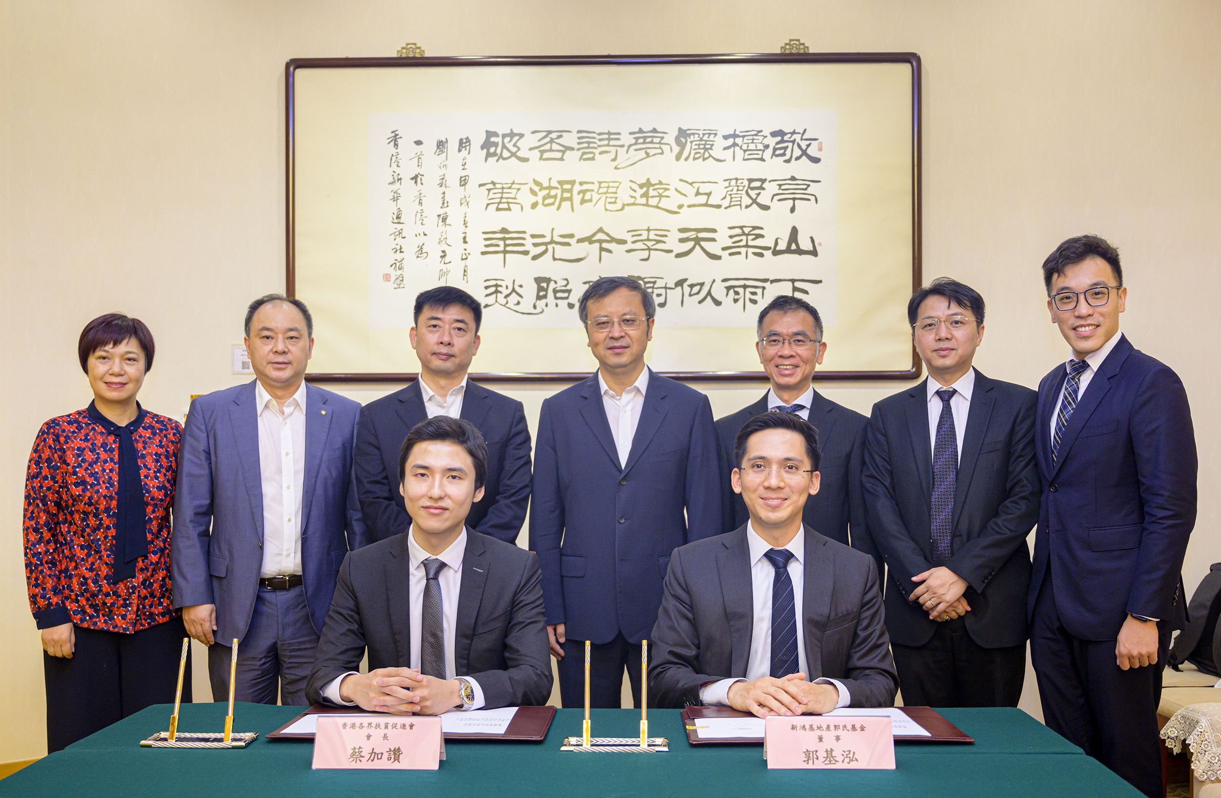 新鸿基地产发展有限公司(“新地”)旗下的新鸿基地产郭氏基金秉承“以心建家”的信念,一直积极回馈社会,关怀弱势群体。日前,新鸿基地产郭氏基金董事郭基泓与香港各界扶贫促进会会长蔡加赞签署捐赠协议书,中联办秘书长文宏武、协调部部长朱文共同见证这一重要时刻。由新鸿基地产郭氏基金捐资香港各界扶贫促进会,帮扶四川巴中市南江乡村医生培训项目。